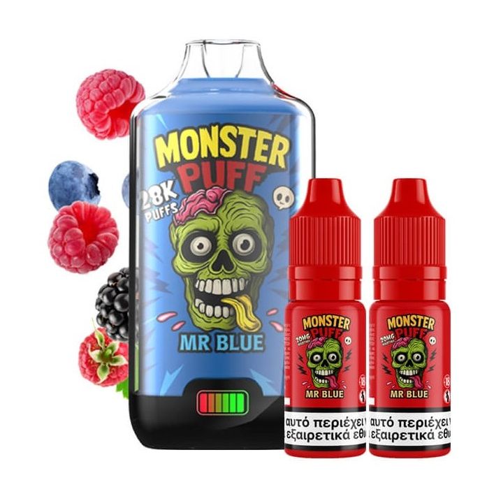 Monster Puff 28K Kit Mr Blue Συσκευή 2ml & 2x10ml 20mg