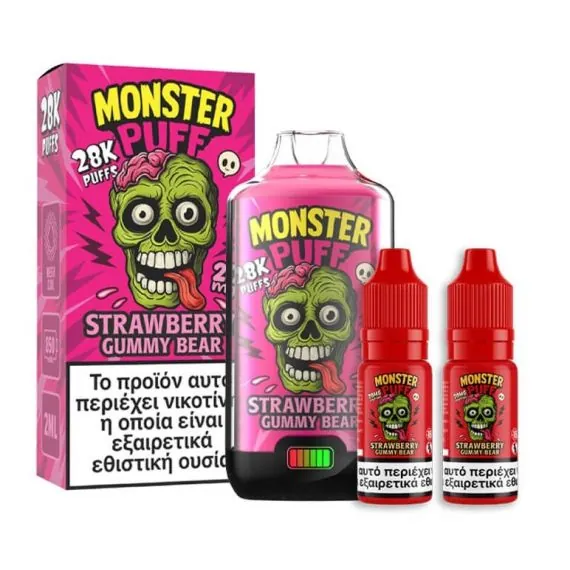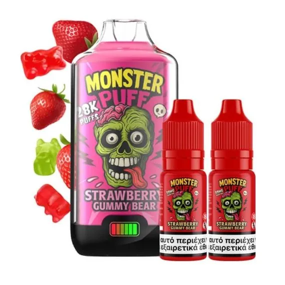 Monster Puff 28K Kit Strawberry Gummy Bear Συσκευή 2ml & 2x10ml 20mg